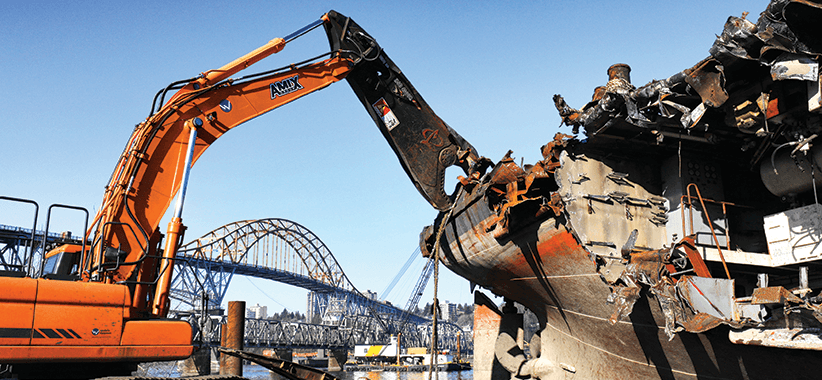 AMIX Group, based in Surrey, British Columbia, began as a scrap metal recycling business in 1971. It has since diversified into a number of complementary business divisions, with the AMIX Recycling division overseeing the company's scrap metal business, including a four-acre scrapyard on the Fraser River. Dean Anderson, operations manager for AMIX Recycling, says the Fraser River yard takes in anywhere from 50 to 250 tons of ferrous and non-ferrous metal per day.